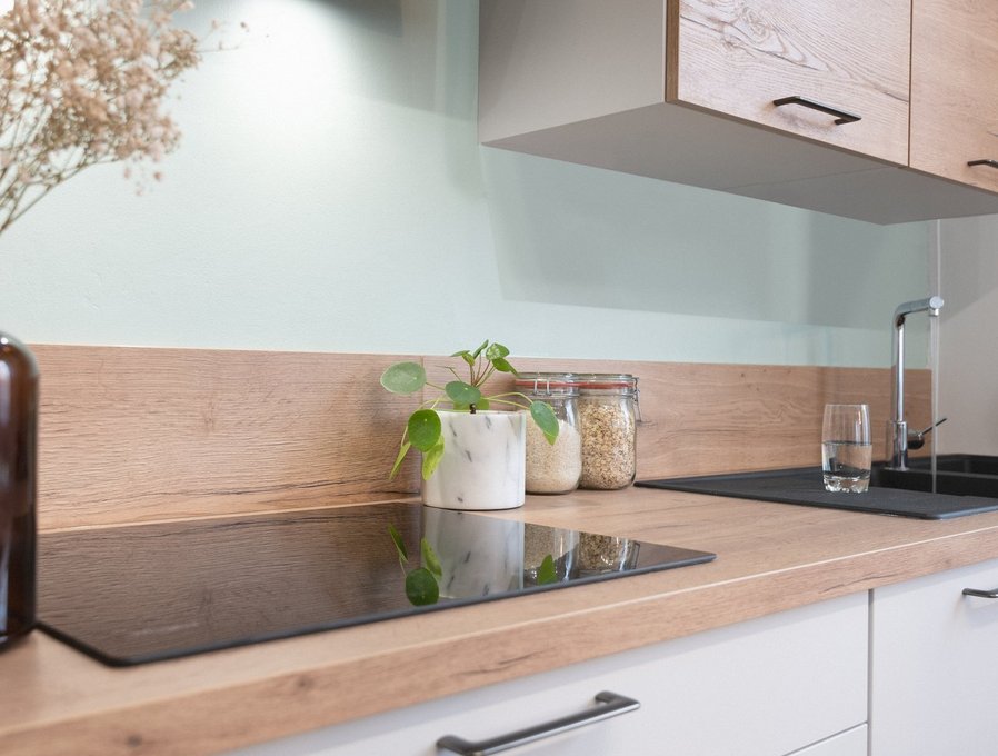 Un plan de travail & crédence : effet chêne Sierra