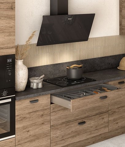 Pour estimer la puissance d’aspiration de votre hotte, il suffit de multiplier la surface de votre cuisine avec sa hauteur. Ce chiffre correspond à un volume que vous multipliez par 12 pour avoir une idée de la puissance nécessaire à une aspiration optimale. Vous pouvez aussi choisir de la cacher dans un meuble haut, pour des raisons esthétiques ou, au contraire, en faire un véritable objet de décoration, avec une place bien visible dans votre cuisine. Votre pilote de projet vous conseillera utilement sur ces questions plus techniques, lorsque vous aurez avec lui votre rendez-vous pour concrétiser votre projet de cuisine : il vous aidera à choisir le modèle le plus adapté à vos besoins.
