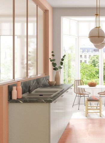 Si vous vivez seul, en couple, ou au sein d’une famille nombreuse, vos besoins seront sans doute différents en termes d’évier. Même s’il existe des célibataires cordons bleus qui passent des heures en cuisine, à concocter de savoureux petits plats pour leurs amis ! L’essentiel est de savoir, en fonction de vos besoins et de vos usages, si vous préférez par exemple un évier avec un bac ou deux bacs. Les deux bacs sont recommandés lorsqu’on a souvent beaucoup de vaisselle, pour optimiser le lavage du rinçage, sans gaspillage d’eau. C’est également utile si on cuisine beaucoup de légumes, pour isoler les produits lavés de ceux qui restent à nettoyer. Si vous disposez d’une petite cuisine, choisir un seul bac vous permettra de gagner de la place, sans lésiner sur l’esthétique. L’autre question importante : souhaitez-vous un égouttoir ou pas ? Là encore, tout dépend de vos habitudes et du nombre de personnes dans votre foyer. Si vous êtes adepte de la méthode 100% lave-vaisselle pour profiter de ce temps libre en allant au cinéma, c’est moins utile, mais si vos armoires croulent sous la porcelaine dorée à l’or fin qui a besoin d’être lavée à la main, alors l’égouttoir sera précieux !