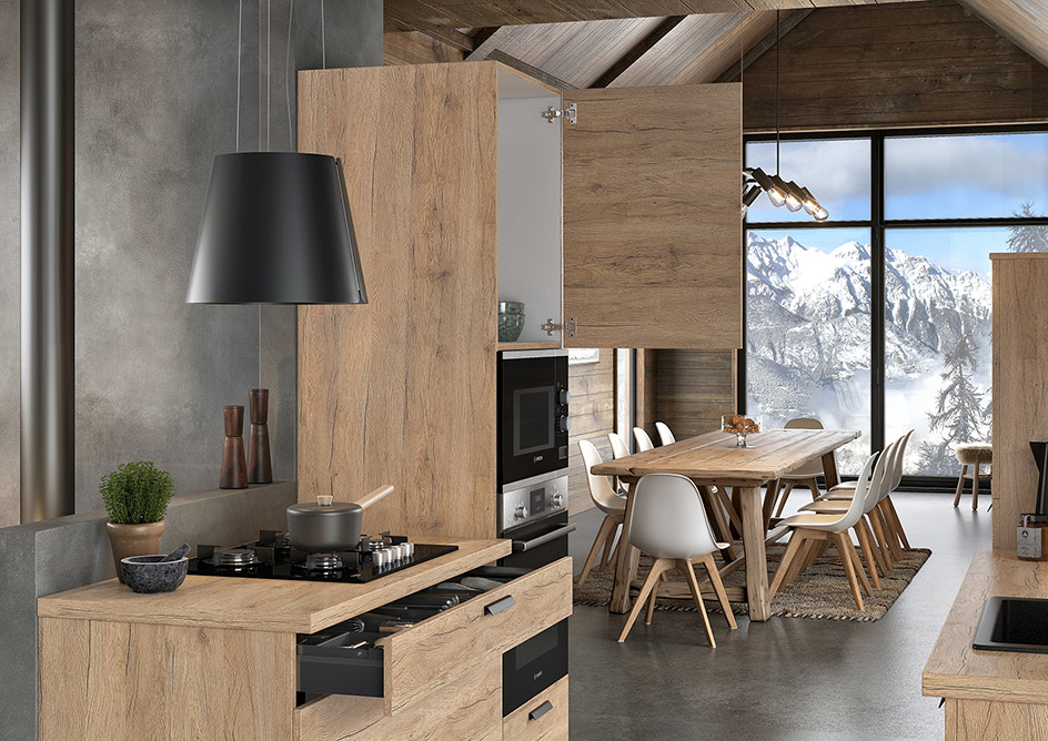 Le bois a l’avantage de convenir à tous les styles de cuisine et à tous les profils. Célibataire, vous aimerez évoluer dans un espace où la sobriété du bois s’accordera bien avec vos envies de liberté. Famille nombreuse, les enfants adoreront retrouver dans la cuisine l’ambiance de leurs jeux d’extérieur. En couple, l’univers bois sera un cocon pour vos explorations culinaires les plus colorées. Tous nos meubles sont assemblés dans des usines en Allemagne : leur solidité renforce votre choix de matériaux durables et robustes, en plus de vos envies esthétiques.
