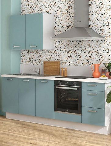 Si vous vous décidez pour une couleur de façades unie, rien ne vous empêche de choisir un plan de travail d’un effet béton ou marbre qui tranchera, et mettra en valeur l’harmonie de vos meubles. Vous pouvez aussi coordonner vos caissons avec une gamme de 9 coloris possibles, pour garder une continuité ou, au contraire, jouer sur des combinaisons plus fantaisistes. La gamme de couleurs de Cake Kitchen vous permet de nuancer vos choix, et de créer l’univers qui s’harmonise le mieux avec votre décoration générale, mais aussi avec l’agencement de votre cuisine, sa luminosité, son ouverture sur les autres pièces ou non, et sa disposition en U, en L ou en I. Parfois aussi, choisir une couleur neutre est une option maligne quand on aime changer souvent de décoration et transformer l’ambiance de sa cuisine au gré de ses envies et des années. Tout est possible, et tout est question d’harmonie entre les différents éléments de votre intérieur.