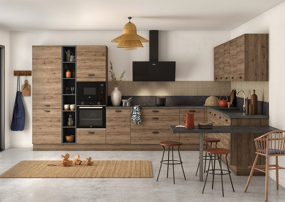 Si vous avez la chance de disposer de beaucoup d’espace, un coin repas reste un atout pour créer une ambiance chaleureuse dans la cuisine. Les enfants adorent y prendre le goûter pendant que les parents préparent le repas du soir ou même révisent les leçons avec eux, les couples savourent le petit déjeuner avec les effluves de croissant et de café et les copains adorent s’y retrouver pour un apéritif dînatoire gourmand.
