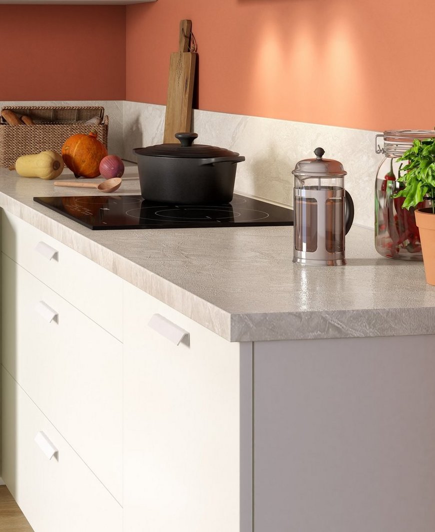 C’est votre plan de travail, qui peut être intégré à vos meubles ou déporté, sur un îlot de cuisine par exemple. C’est un endroit important, parce que c’est là que vous avez besoin d’espace pour étaler de la pâte ou faire des confitures en famille, sans être serrés comme des sardines. De plus en plus, le plan de travail sert aussi d’espace connecté, pour travailler ou regarder une recette en vidéo ; pensez bien à vos habitudes de vie pour déterminer l’agencement de cette zone.