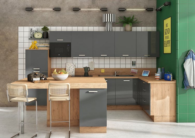 Les matériaux de la gamme Cake Kitchen répondent à ce double objectif de qualité et de style, avec un choix de 20 façades, mates ou brillantes, et de 20 plans de travail, et des aménagements tels que des îlots centraux. Vous avez l’embarras du choix, il ne vous reste qu’à décider de l’endroit où placer votre îlot de cuisine pour en profiter le plus !