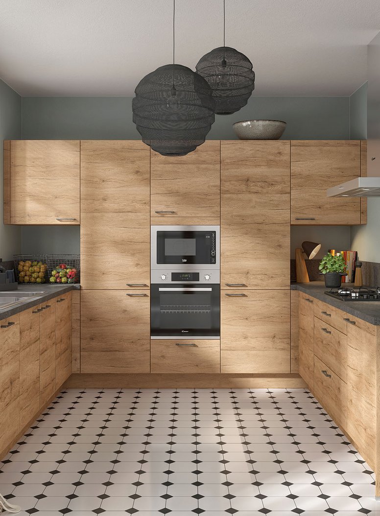 L’avantage d’une cuisine en I est sa position, bien délimitée. Vous évoluerez le long d’un aménagement linéaire, ce qui facilite vos déplacements d’une zone d’activité à l’autre, puisqu’elles sont proches. Tenez bien compte des règles d’or de votre organisation en cuisine, même si votre configuration est en longueur : un plan de travail à proximité du frigo pour optimiser le déballage les courses et éviter de laisser sa porte ouverte trop longtemps , le four de préférence en hauteur, l’évier proche du lave-vaisselle et de la poubelle. Nos designers cuisinistes vous aideront à visualiser vos choix d’implantation, pour être sûrs que vous ne vous fassiez pas de torticolis en surveillant l’eau qui coule d’un côté et la ratatouille qui frétille de l’autre.