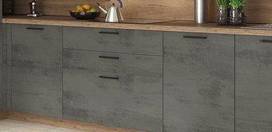 Cette cuisine s’intègre facilement dans les grands espaces : vous pouvez jouer sur les volumes, les effets de matière et les couleurs, pour créer une ambiance en harmonie avec le reste de votre intérieur. Si vous avez la chance d’avoir une source de lumière naturelle, l’impression de pièce à vivre sera encore plus grande, surtout si vous choisissez pour vos façades des couleurs qui captent la lumière. D’autres modèles de cuisine en bois comme le modèle San Remo ou effet chêne comme le modèle Sierra sont également disponibles.