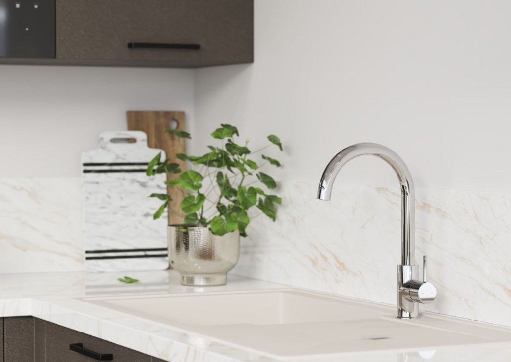 Côte style, le relief des façades Café Structuré est élégamment contraste par le décor marbre du plan de travail Marbre Carrare Bronze et de sa crédence coordonnée.. L'ensemble est chic, présent sans être ostentatoire, et il donnera à votre intérieur un cachet très moderne, même si vous aimez les thés à l'anglaise et les blanquettes de veau traditionnelles ! Ce modèle convient idéalement aux personnes qui ont le temps de profiter des joies de la gastronomie de saison et des recettes du terroir : retraités actifs, grands-parents toniques et accueillants.