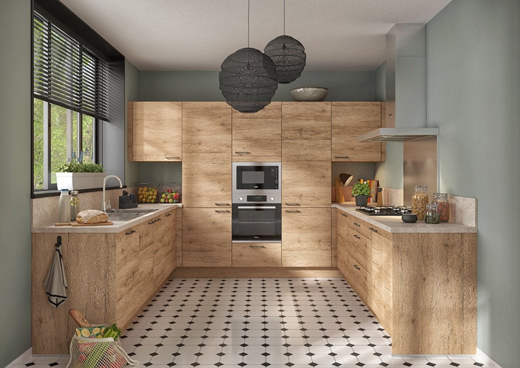 Cette configuration en U permet d’habiller 3 pans de murs, pour une répartition optimale de vos espaces de rangement et de vos zones de lavage, de préparation, de cuisson et de conservation au froid. Un atout quand il s’agit de coordonner les repas pour plusieurs.