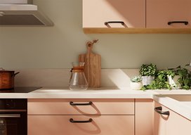 Élégante et fonctionnelle, la cuisine corail en L de Cake Kitchen a été pensée pour les familles actives qui aiment évoluer dans des espaces de vie pratiques et chaleureux. Cette cuisine équipée combine des lignes contemporaines et des matériaux naturels : le juste équilibre pour alterner journées bien remplies et plaisir de moments partagés en famille, dans un décor inspirant.