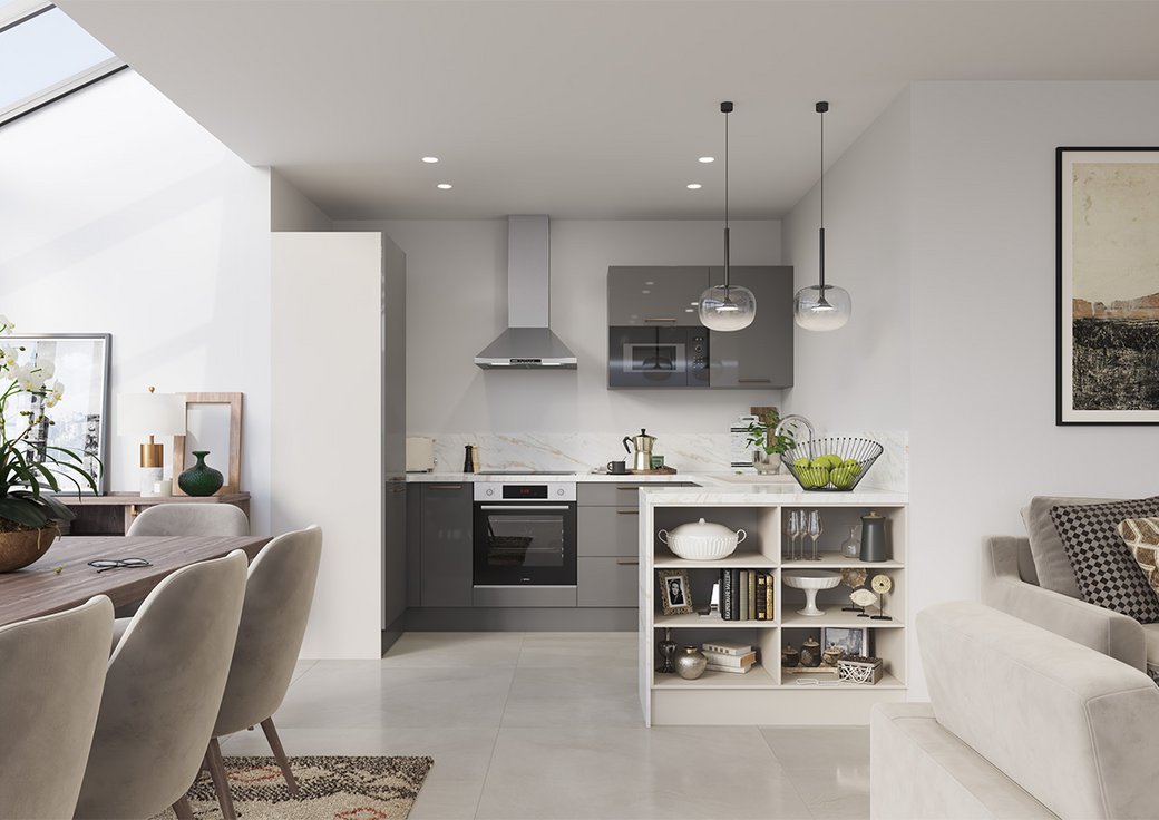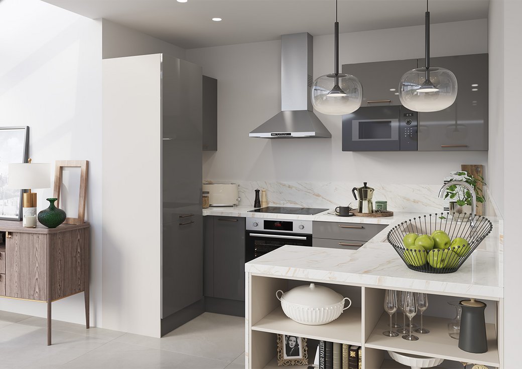 Côté style, l'aspect brillant du gris ardoise est élégamment contrasté par le décor chêne du plan de travail et de sa crédence coordonnée. L'ensemble est chic, présent sans être ostentatoire, et il donnera à votre intérieur un cachet très moderne, même si vous aimez les thés à l'anglaise et les blanquettes de veau traditionnelles ! Ce modèle convient idéalement aux personnes qui ont le temps de profiter des joies de la gastronomie de saison et des recettes du terroir : retraités actifs, grands-parents toniques et accueillants.