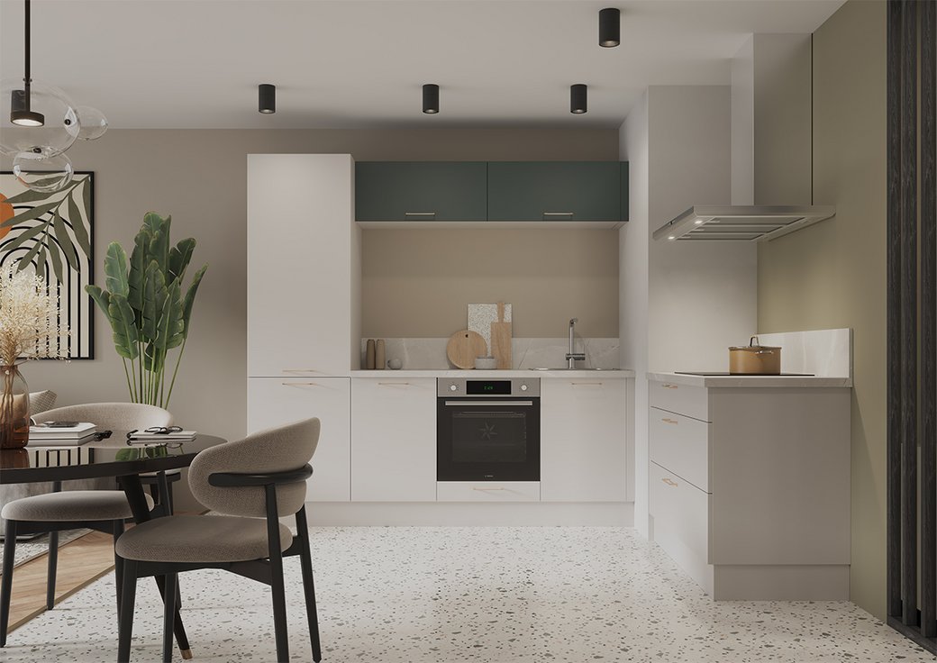 L'implantation en II, composée de deux pans linéaires, placés côte à côte ou face à face, permet de s'intégrer facilement dans tout type de configuration, notamment dans les appartements où chaque mètre carré compte. Elle facilite l'organisation des tâches, grâce à une capacité de rangement doublée : tout est à portée de main, dans un espace concentré. L'intégration des appareils électroménagers ajoute de l'harmonie, à la fois sur le plan du style et de la couleur. Question qualité, les appareils de la gamme sont tous sélectionnés auprès de marques réputées pour leur sérieux et leur expérience : le beau doit aussi être solide. Grâce à notre outil de conception de cuisine en 3D, vous pouvez déjà visualiser votre cuisine équipée !