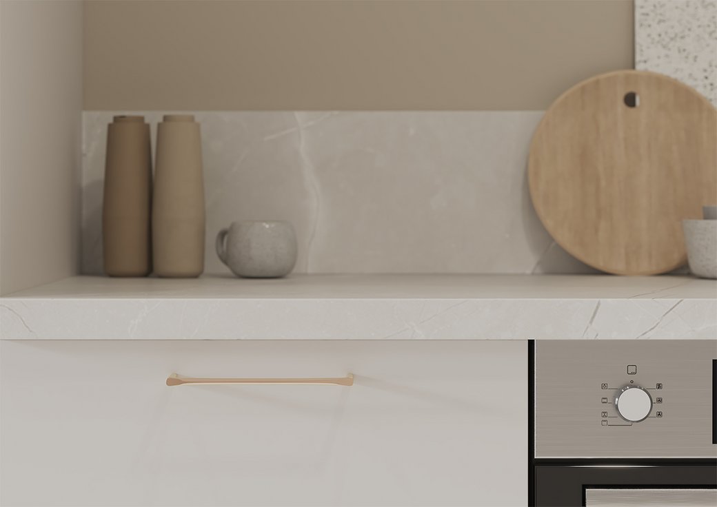 La couleur blanc alpin du plan de travail ensuite, qui évoque les glaciers immaculés, apporte la touche de pureté que l'on attend dans une cuisine qui doit être aussi propre que belle. Enfin, le fait d'avoir un plan de travail clair est plus exigeant en soin, parce que tout se voit davantage, mais il contribue magnifiquement à l'impression de perfection souhaitée par les cuisiniers méticuleux, voire maniaques !