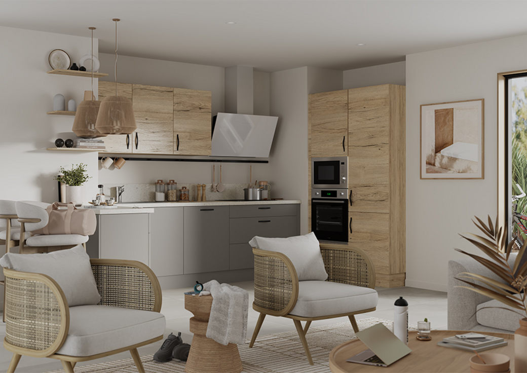 Cette cuisine est idéale pour tous ceux qui accèdent à la propriété pour la première fois. Sa configuration très ergonomique est pratique, que l’on veuille réchauffer un plat sur le pouce ou préparer un repas plus élaboré. Une cuisine où tout est à portée de main, en toute simplicité et efficacité. Tout aussi pratique, vous pouvez découvrir notre cuisine en chêne, idéale pour les jeunes actifs !