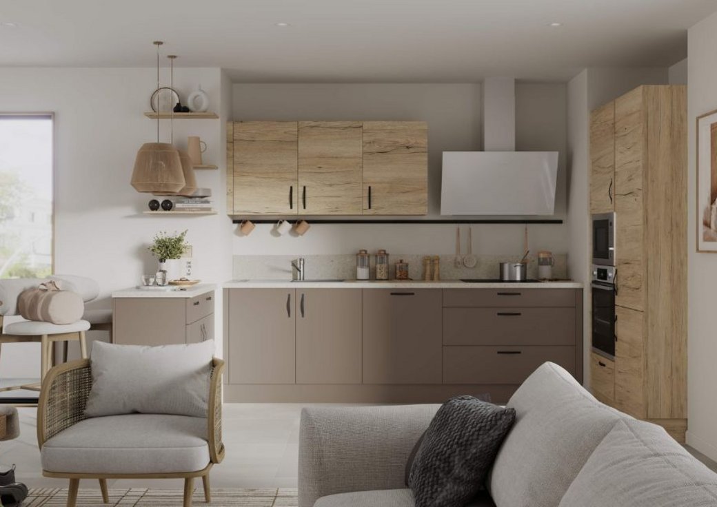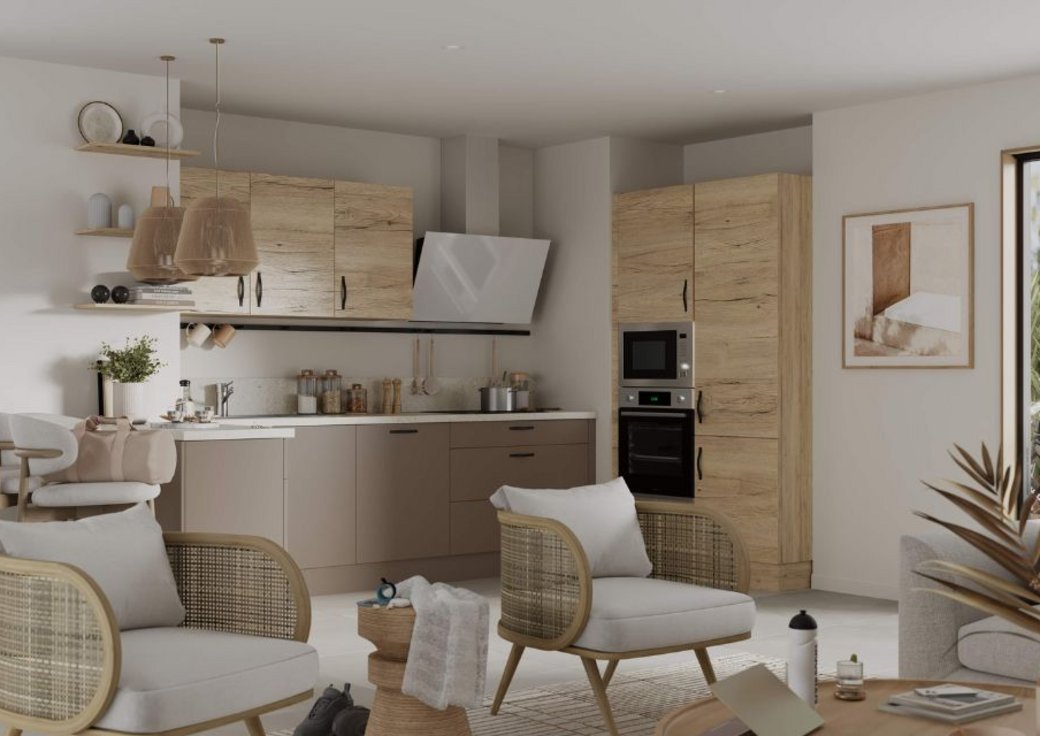 Cette cuisine est idéale pour tous ceux qui accèdent à la propriété pour la première fois. Sa configuration très ergonomique est pratique, que l’on veuille réchauffer un plat sur le pouce ou préparer un repas plus élaboré. Une cuisine où tout est à portée de main, en toute simplicité et efficacité. Tout aussi pratique, vous pouvez découvrir notre cuisine en chêne, idéale pour les jeunes actifs !