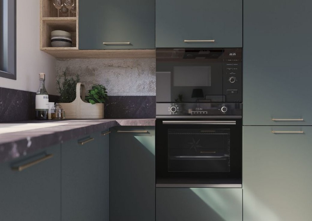 Rajoutez à ce bel ensemble quelques pièces décoratives de choix : un luminaire design ou vintage, une plante méditerranéenne qui embaume, une grande jarre ou quelques beaux pots en verre, et vous obtiendrez une atmosphère de vacances toute l'année ! Le total look ne vous tente pas ? Notre cuisine gris soie vert minéral est idéale pour ceux qui aiment la simplicité et le minimalisme !